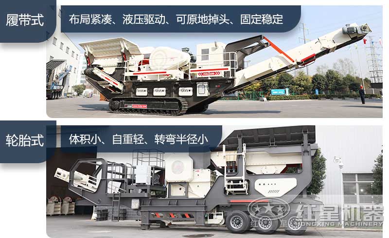 移動式軋石機(jī)可分為履帶式移動破碎機(jī)和輪胎式移動破碎機(jī)兩種形式的驅(qū)動方式。